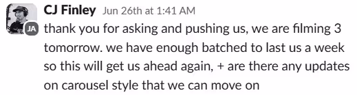 Our clients typically film 3-5 hours a month, we take care of the rest. In other cases, they have footage and need no extra work.
